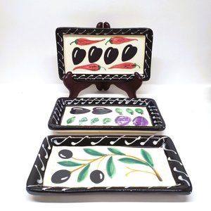 Crate & Barrel Debby Segura Olive Dishes Dipping Trays Set x3 Italy 1999 - READ