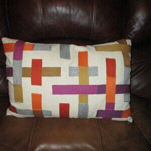 Crate & Barrel Geometric Embroidered Pillow Cover Fall colors Madison
