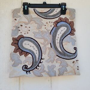 Crate & Barrel Gillespie linen blend embroidered paisley 18x18 pillow cover