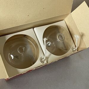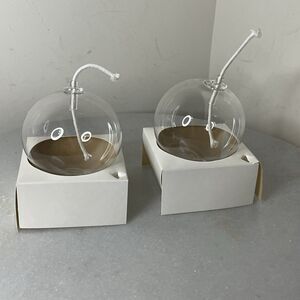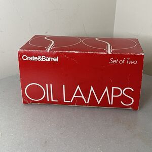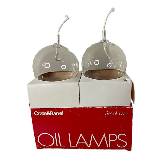 Crate & Barrel Handblown Clear Art Glass Oil Lamps -MCM Style - Old New Stock