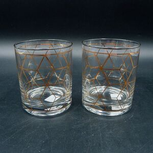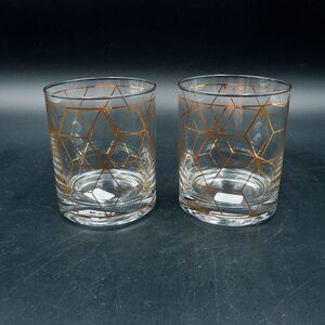 Crate & Barrel Jaxson Old Fashioned Rocks Glassware by Krosno Poland Gold Glass