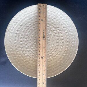 These Crate & Barrel Jute salad plates present a sophisticated touch to any dining setting. Their textured finish enhances the visual appeal, making them an elegant choice for both casual and formal meals. With a neutral beige tone, they effortlessly blend into any table arrangement.