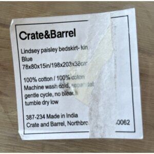 Crate & Barrel LINDSEY Blue Paisley King Bed Skirt 100% Cotton NEW in Package