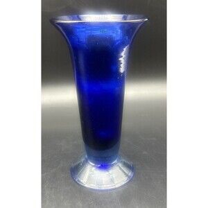 Crate & Barrel Mexico COBALT BLUE Blown Art Glass Vase 8”