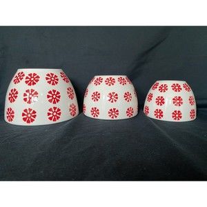 Crate & Barrel Mixing Bowls Addison Lot of 3 Nesting Heart Design Portugal. The large bowl is 6" These are in excellent used condition. No cracks, chips or crazing seen.