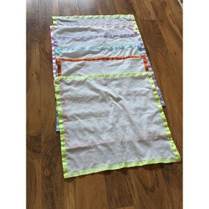 White Cloth Napkins With Multicolor Satin Trim Edges