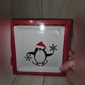 Crate & Barrel Penguin Appetizer Plates 2 Sets Of 4 NIB Holiday Christmas Desert