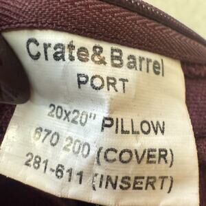 Crate & Barrel Port Velvet Pillow Cover 20x20 Burgundy Wine Plush Zipper (1)