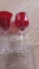Ruby Red drinking glasses with a red bowl and a clear stem.