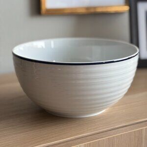 Crate & Barrel Roulette Spal Portugal White Blue Band Large Serving Bowl 8.75"