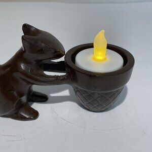 Crate & Barrel Squirrel & Acorn Votive Candle Holder Painted Brass Metal Brown