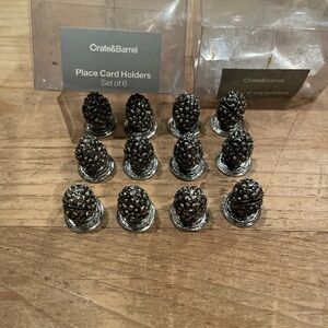 Crate & Barrel VTG silver pinecones pewter finish PlaceCard Holders set of 12