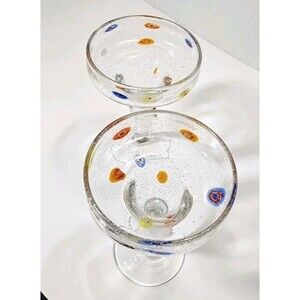 Crate & Barrel Zazz Millefiori Margarita Glasses Set of 2 Handblown Art Barware