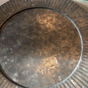 Crate & Barrel decker 6 galvanized chargers all have factory drilled hole for decor purposes.