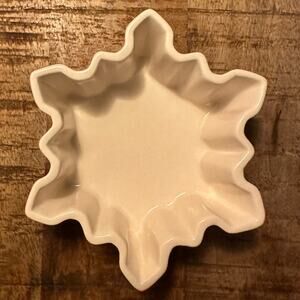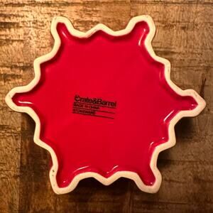 Crate & Barrel pair of red and white ceramic snowflake shaped bowls dish ramekins