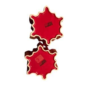 Crate & Barrel pair of red and white ceramic snowflake shaped bowls
