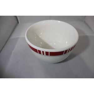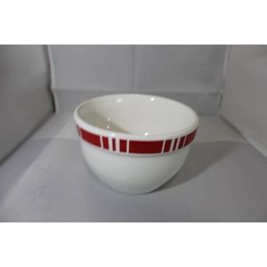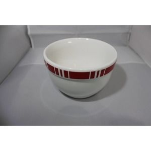 Crate and Barrel Ceramic Bowl, 5.5" White with Red Stripe.