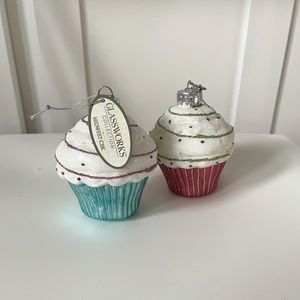 Crate and Barrel Glassworks Vintage Cupcake Glass Holiday Gift Ornaments