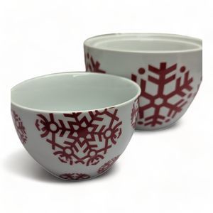 Crate and Barrel Holiday Nesting Bowls Merry Snowflake Red White