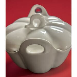 Crate and Barrel Pumpkin Tureen White Serving Dish Lid Thanksgiving Halloween