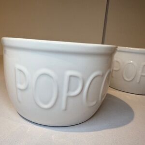 Crate and Barrel Two Popcorn Bowls Ceramic Individual Serving White Lot Of 2. Very good condition. Some small marks like a light rust stain as pictured. Please see photos for condition and details.