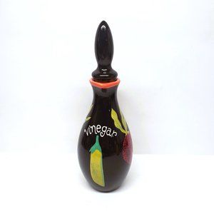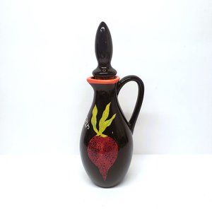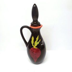 Crate and Barrel Vinegar Cruet Pitcher Black Ceramic Beets Peas Cork Stopper