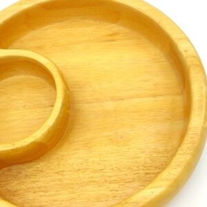 Crate and Barrel Wooden Chip and Dip bowl. Light blonde wood. Great condition. Some scuffing on bottom and side. Natural woodgrain and imperfections make the piece really pretty and great for entertaining. 12 x 12 and 2 inches high.