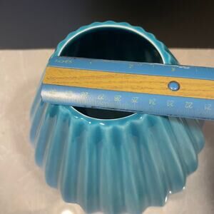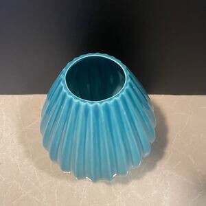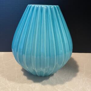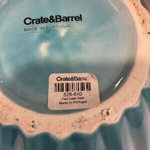 Crate and Barrel decorative Vase teal esker 9" tall ribbed pattern Portugal blue