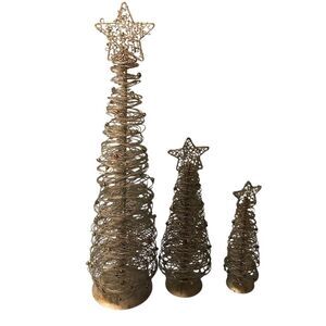 Crate&Barrel Gold Spiral Glitter Christmas Tree Centerpiece Set of 3