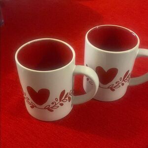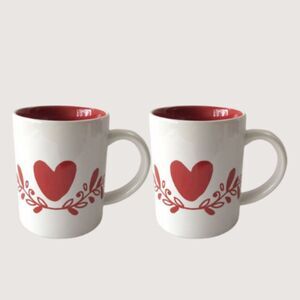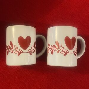 Crate&Barrel Heart Mugs Red and White Set of Two NWT