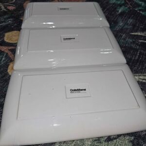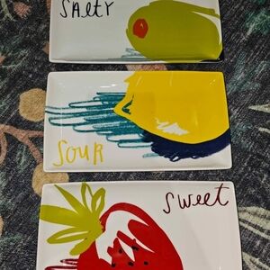 Set of three rectangular plates. Features vibrant fruit designs. Perfect for serving sweet, sour, and salty dishes.