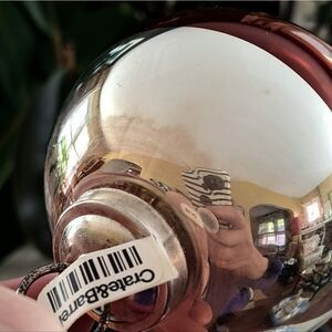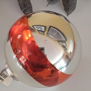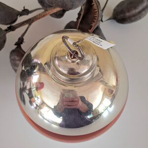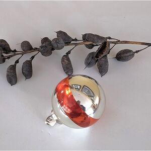 Crate&Barrel Orange And Silver Round Glass Christmas Ornament
