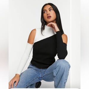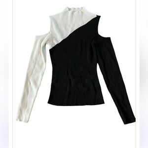 Crave Fame Juniors' Cold-Shoulder Mock-Neck Sweater Size M. Black & white.