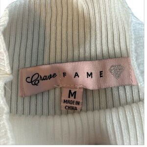 A fresh slant on color blocking plus cool cold-shoulder cutouts bring modern style to Crave Fame's ribbed turtleneck sweater. Mock neck long sleeves with cold-shoulder cutouts Imported Fitted all over fine-gauge ribbing; color blocked design with diagonal seaming