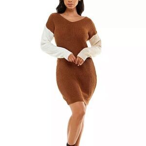 Crave Fame Juniors Colorblocked Reversible Sweater Dress Brown Cream NEW S