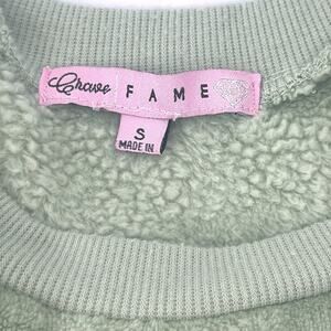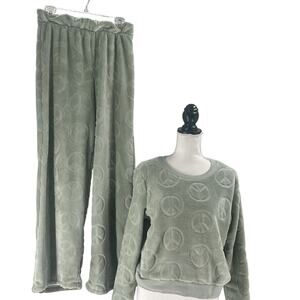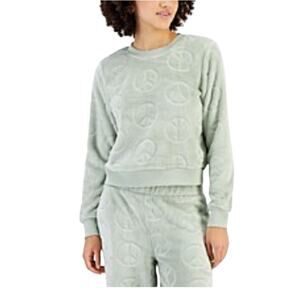 Crave Fame Juniors' Cozy Faux-Fur Set Embossed Peace Sign Crewneck Top and Pant