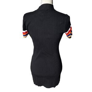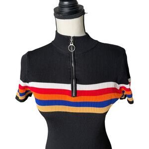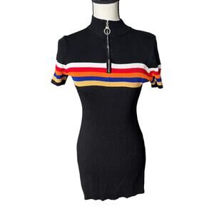 Crave Fame Retro 90s knit Ribbed Black Rainbow Striped Mini Dress Size XL