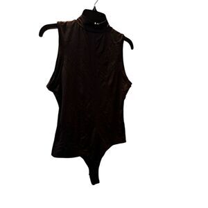Keywords: women's bodysuit, black tank, mock neck, sleeveless, casual wear, medium size, slim fit, polyester blend, all seasons, machine washable, new with tags.