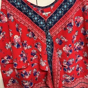 Patriotic, Red , White , & Blue Flowing Top