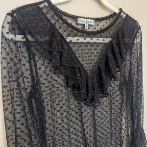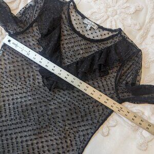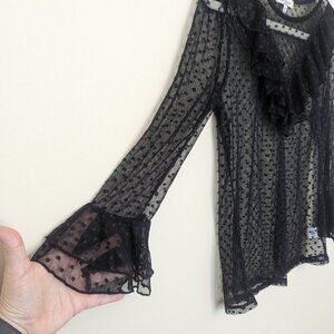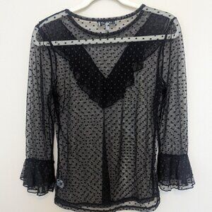 Crave Fame by Almost Famous black polka dot mesh lace ruffle top Large EUC