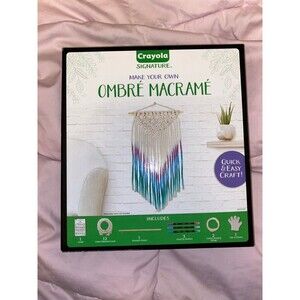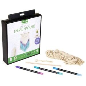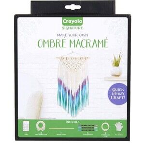 The Crayola Signature Macrame Wall Art Kit provides all you need to decorate a homemade wall hanging in 60 minutes or less! Color the macramé strings with ombre techniques and the Signature Markers, then assemble into a beautiful piece of macrame wall art you can hang at home or in the office. The kit includes an 8” Wooden Dowel, 12 (56") Strands of Macramé String, 4 Signature Brush Tip Markers, 1 Pair of Gloves, and 1 Instruction Guide. Great gift for adults and teens, ages 14 and up.