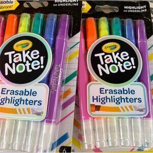CRAYOLA HIGHLIGHTER SET: Features 6 Crayola Take Note Chisel Tip Erasable Highlighters for all your highlighting needs!