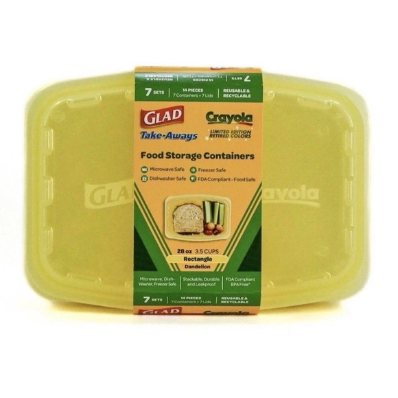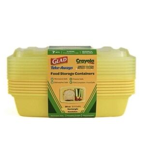 Glad Crayola Yellow Dandelion Take Away 7Containers 7 Lids 28oz Rectangular