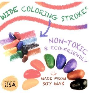 Crayon Rocks are simply the best coloring tool for young children! Made with non-toxic soybean wax, they are vibrantly colored and create beautifully textured child artwork similar to oil pastels. Long lasting and durable, they stimulate creativity and imagination by allowing small fingers to color easily in large, wide strokes. They were specifically designed to strengthen the tripod grip muscles in young children and improve fine motor coordination, essential for handwriting skills.
