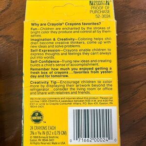 Crayons Crayola 24 Count Box Non Toxic Colors Pack School Color 52-3024 USA 1988