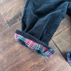 black corduroy with red train
