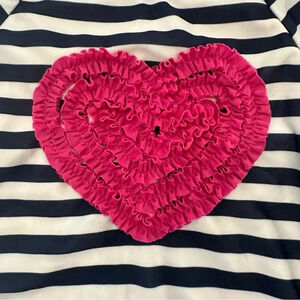 Crazy 8 Girl Toddler Short Sleeve Navy & White Stripe with Pink Heart Sz 4T GUC