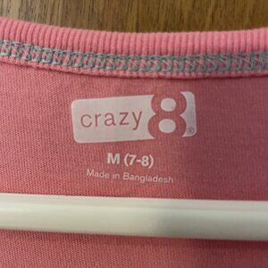 The Crazy 8 Girls Size Medium Light Pink Surfboard Graphic Tank Top is a stylish and comfortable option for young girls who love the beach and surfing theme. Made from 100% cotton jersey fabric, this sleeveless tank top features a round neckline and a pullover closure for easy wear. The light pink color with glitter accents adds a fun and playful touch, perfect for casual occasions during the summer and spring seasons. With its relaxed fit and breathable design, this tank top is a must-have addition to any girl's wardrobe. Brand New with Tags. Shipped with USPS. From a smoke free and pet free home.