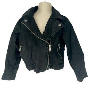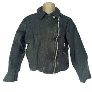 Crazy 8 Moto Jacket Unisex Kids Size 5 Black LS Offset Zipper Snap Collar