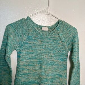 Good condition, minor wear/ pilling. Crazy 8. Sweater dress. Crewneck. Long sleeve. Teal blue/green color with heathered beige pattern. Shoulder button details. Size Medium 7-8. 100% acrylic. Measurements available upon request. Smoke free home. No trades, offers welcome.